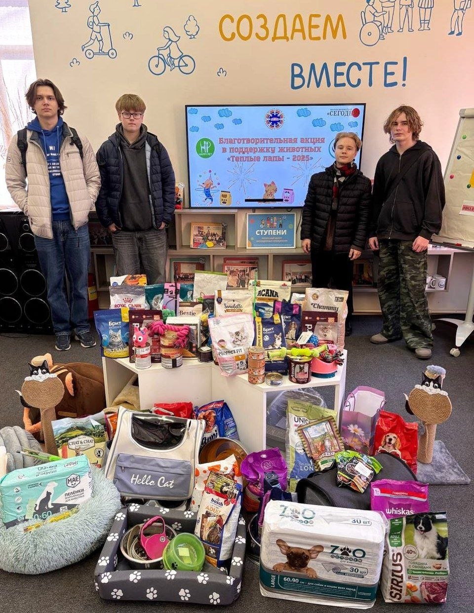 Весь собранный корм и прочие предметы были переданы волонтерской организации.