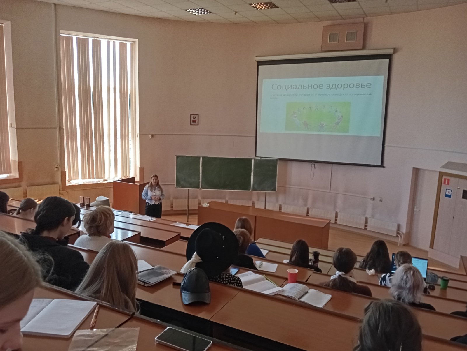 Юлия Александровна рассказала об основных компонентах здорового образа жизни: рациональном питании, регулярной физической нагрузке, личной гигиене, закаливании организма, отказе от вредных привычек ( алкоголя, табака, вейпов, наркотических и токсических веществ), режиме труда и отдыха, укреплении психического здоровья путём контроля над поведенческими факторам риска.