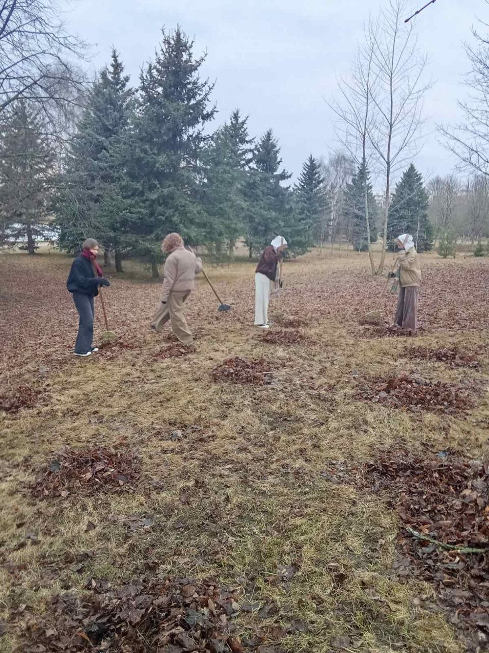 Очистили дорожки от прошлогодней листвы и мусора.
