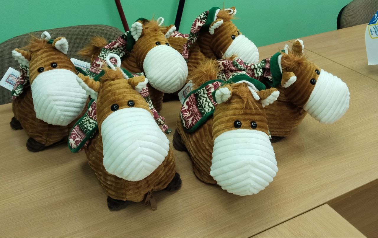 А также от профкома Института были вручены сладкие подарки в виде символа 2026 года — милые лошадки с килограммом белорусских сладостей.